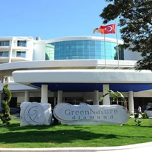Het 551-kamer Green Nature Diamond ligt centraal in Marmaris en staat garant voor een luxueuze en creatieve ervaring. Het hotel is uitgerust met een geavanceerd fitnesscenter, een binnen- en buitenzwembad, verscheidene culinaire aanbiedingen en faciliteiten voor kinderen, waaronder een veilige speelruimte. Dit 551-kamer Green Nature Diamond hotel beschikt over verschillende kameropties die elk comfortabel verblijf garanderen. De ruime Junior Suites zijn met finesse ingericht, voor de gasten die extra comfort appreciëren. De standaardkamers bieden een eenvoudige, maar warme en comfortabele sfeer. Kamers variëren in grootte, afhankelijk van hun capaciteit die varieert tussen twee en drie personen. Maar elk van hen beschikt over aantrekkelijke voorzieningen zoals 24 uur per dag roomservice, airconditioning, gratis WiFi en mini-bars. Voor de gasten die op zoek zijn naar meer extravagante decoratie en aparte slaap- en woonkamers, is er een aanbod van acht grote suites, waaronder de Honeymoon Suite met een rond marmeren bubbelbad in de slaapkamer.